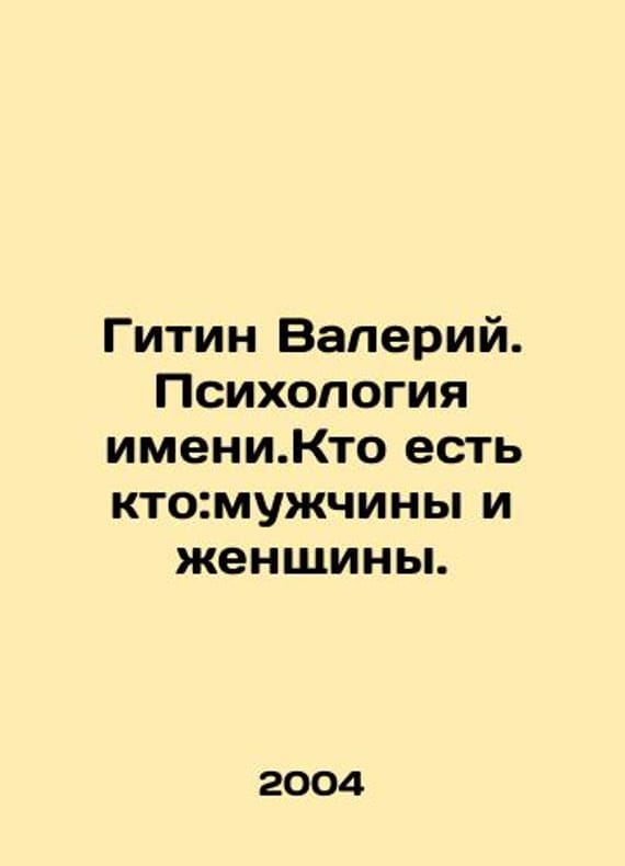 Gitin Valery. Psychology of names. Who is who: men and women. In Russian /Gitin Valeriy. Psikhologiya imeni.Kto est kto:muzhchiny i zhenshchiny. Kharkov Torgsin. 2004. We have thousands of titles and often several copies of each title may be available. Please feel free to contact us for a detailed description of the copies available. SKUalb72f5df5a801bbf79.