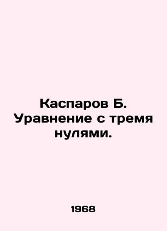 Short description: Kasparov B. Equation with three zeros. In Russian /Kasparov B. Uravnenie s tremya nulyami.In Russian.Krasnodar Book Publishing House. 1968. 255s. We have thousands of titles and often several copies of each title may be available. Please feel free to contact us for a detailed description of the copies available. SKUalb73067c7da252c5cd