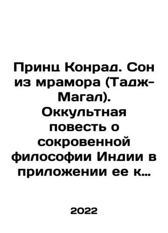 Short description: Prince Conrad. A Dream of Marble (Taj Magal). An occult tale of India's innermost philosophy in its application to modern life. In Russian /Prints Konrad. Son iz mramora (Tadzh-Magal). Okkul'tnaya povest' o sokrovennoy filosofii Indii v prilozhenii ee k sovremennoy zhizni.In Russian.Tyre Room 5, Moscow Publishing House, V. Sekachev 2022, 168s. We have thousands of titles and often several copies of each title may be available. Please feel free to contact us for a detailed description of the copies available. SKUalb73135d2afa914ba8