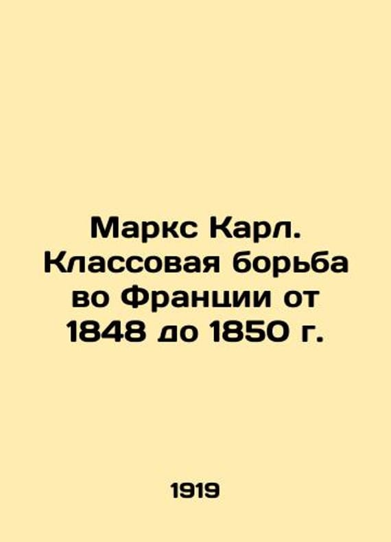 Marx Karl. Class struggle in France from 1848 to 1850 In Russian /Marks Karl. Klassovaya borba vo Frantsii ot 1848 do 1850 g. With the introduction of Friedrich Engels. Petrograd. Publishing House of the Union of Communes of the Northern Region. 1919. We have thousands of titles and often several copies of each title may be available. Please feel free to contact us for a detailed description of the copies available. SKUalb73475d93685eb788.
