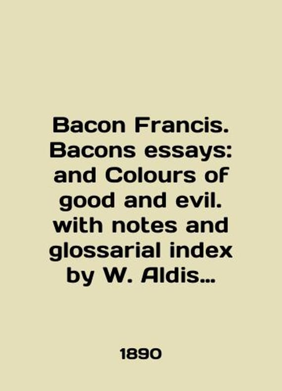 Bacon Francis. Bacon essays: and Colours of good and evil. with notes and glossary index by W. Aldis Wright / Bacon Essay: Colors of Good and Evil, with notes and glossary by W. Aldis Wright In English /Bacon Francis. Bacons essays: and Colours of good and evil. with notes and glossarial index by W. Aldis Wright/ Esse Bekona: Tsveta dobra i zla. s primechaniyami i glossariem U. Aldisa Rayta In English London Macmillan and co 1890. We have thousands of titles and often several copies of each title may be available. Please feel free to contact us for a detailed description of the copies available. SKUalb736e5750e9f81190.
