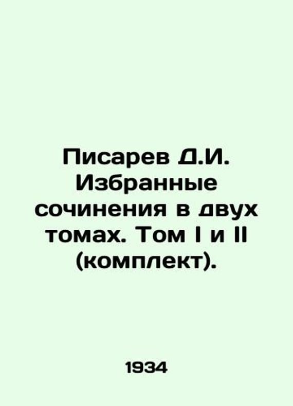 Short description: Pisarev D.I. Selected works in two volumes. Volumes I and II (set). In Russian /Pisarev D.I. Izbrannye sochineniya v dvukh tomakh. Tom I i II (komplekt).In Russian.General editorial and introductory article by V. Ya. Kirpotin. Comments by V. Ya. Kirpotin and N. F. Belchikov. Editorial text and notes by N. F. Belchikov. Repeat by A. P. Radishchev. Moscow. State Publishing House of Art Literature (GIKHIL). 1934-1935. 600, 638 p. We have thousands of titles and often several copies of each title may be available. Please feel free to contact us for a detailed description of the copies available. SKUalb73723447f0e01d1d