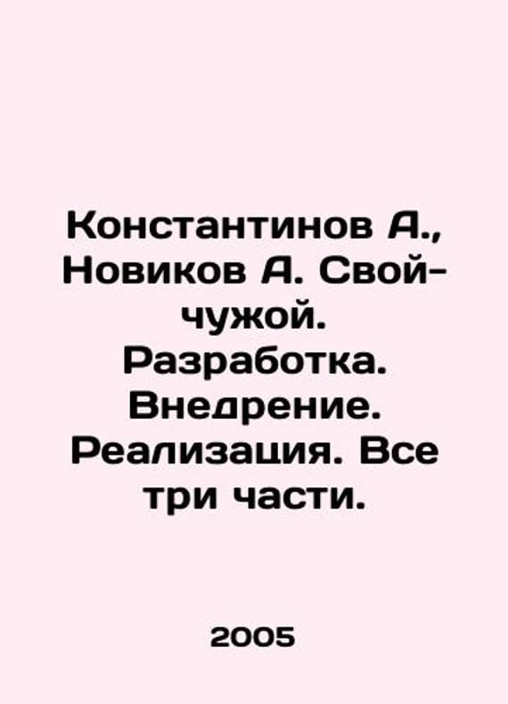Konstantinov A., Novikov A. Svoy-alien. Development. Implementation. Implementation. All three parts. In Russian /Konstantinov A., Novikov A. Svoy-chuzhoy. Razrabotka. Vnedrenie. Realizatsiya. Vse tri chasti. St. Petersburg. Neva 2005.We have thousands of titles and often several copies of each title may be available. Please feel free to contact us for a detailed description of the copies available. SKUalb7387fbd4951f1b00.