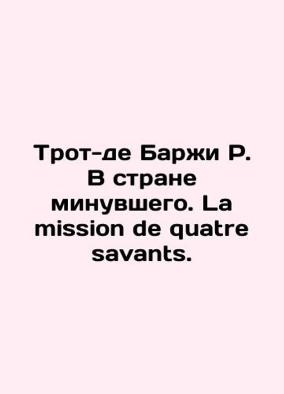 Trot de Barge R. In the Land of the Past. La mission de quatre savants. In Russian (ask us if in doubt)/Trot-de Barzhi R. V strane minuvshego. La mission de quatre savants.Novel. Translated from French by A. and N. Gubskikh. Moscow Puchin Publishing House 1927 MCMXXVIIg. 270 2 p. We have thousands of titles and often several copies of each title may be available. Please feel free to contact us for a detailed description of the copies available. SKUalb73d3880bb9f9def6