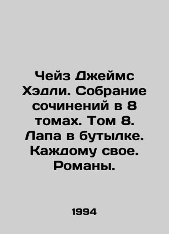 Short description: Chase James Hadley. A collection of essays in 8 volumes. Volume 8. A paw in a bottle In Russian /Cheyz Dzheyms Khedli. Sobranie sochineniy v 8 tomakh. Tom 8. Lapa v butylke. Kazhdomu svoe. Romany.In Russian.Translation from English by A. Samarkin, V. Andreeva. Edited by V. I. Kodolov. Artist S. S. Geraskevich. Moscow. Voice. 1994. 352 p. We have thousands of titles and often several copies of each title may be available. Please feel free to contact us for a detailed description of the copies available. SKUalb73e6d9130e2b1310