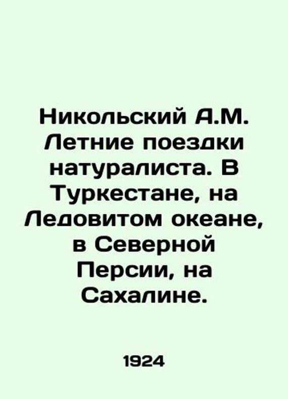 Short description: Nikolsky A.M. The naturalist's Summer Trips to Turkestan, the Arctic Ocean, Northern Persia, Sakhalin. In Russian /Nikol'skiy A.M. Letnie poezdki naturalista. V Turkestane, na Ledovitom okeane, v Severnoy Persii, na Sakhaline.In Russian.Second L. GIZ Edition 1924. We have thousands of titles and often several copies of each title may be available. Please feel free to contact us for a detailed description of the copies available. SKUalb73e703c9faca19ff