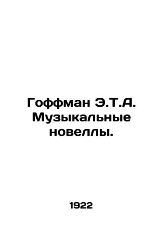 Hoffman E.T.A. Music Novels. In Russian /Goffman E.T.A. Muzykalnye novelly. St. Petersburg Gosizdat 1922. We have thousands of titles and often several copies of each title may be available. Please feel free to contact us for a detailed description of the copies available. The delivery of this book might be delayed beyond the usual timeframe due to extended processing and preparation before shipment, and faster shipping opSKUalb74518a8a01d602e7