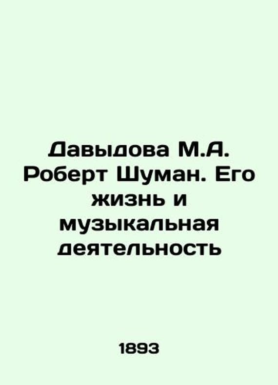 Davydova M.A. Robert Schuman. His life and musical activity In Russian (ask us if in doubt)/Davydova M.A. Robert Shuman. Ego zhizn i muzykalnaya deyatelnostBiographical Essay. With a portrait of R. Schumann and a musical appendix consisting of a selection of his works for the piano. We have thousands of titles and often several copies of each title may be available. Please feel free to contact us for a detailed description of the copies available. SKUalb74aa4c2dbdb17068