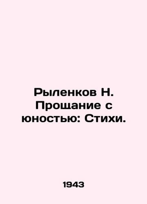 Short description: Rylenkov N. Farewell to Youth: Poems. In Russian /Rylenkov N. Proshchanie s yunost'yu: Stikhi.In Russian.M: Soviet writer, 1943, 56 p. Format: 14 x 11 cm. We have thousands of titles and often several copies of each title may be available. Please feel free to contact us for a detailed description of the copies available. SKUalb751c7a58eb34f35e