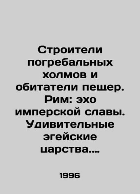 Short description: Builders of funerary hills and cave dwellers. Rome: echo of imperial glory. Amazing Aegean kingdoms. Schumer: cities of Eden. Aztecs: empire of blood and grandeur. Brilliant heritage of Africa. In Russian /Stroiteli pogrebal'nykh kholmov i obitateli peshcher. Rim: ekho imperskoy slavy. Udivitel'nye egeyskie tsarstva. Shumer: goroda Edema. Atsteki: imperiya krovi i velichiya. Blestyashchee nasledie Afriki.In Russian.Encyclopedia of Vanished Civilizations. M., Terra, 1996-1997, 168 p We have thousands of titles and often several copies of each title may be available. Please feel free to contact us for a detailed description of the copies available. SKUalb7573fc23c888bca7