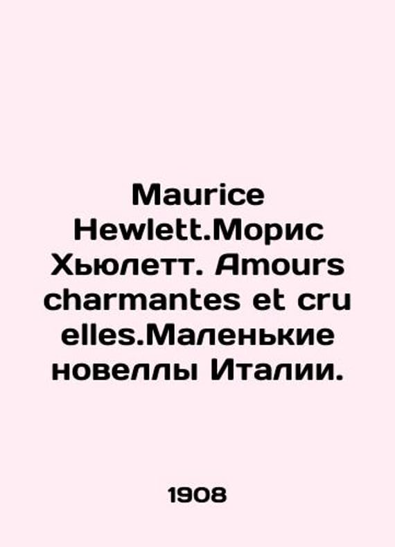 Short description: Maurice Hewlett.Maurice Hewlett. Amours charmantes et cruelles.Little Novels of Italy. In French /Maurice Hewlett.Moris Kh'yulett. Amours charmantes et cruelles.Malen'kie novelly Italii.In French.In French. Paris. Mercure de France. 1908. 426s. We have thousands of titles and often several copies of each title may be available. Please feel free to contact us for a detailed description of the copies available. SKUalb7586ca90e6c98ed8