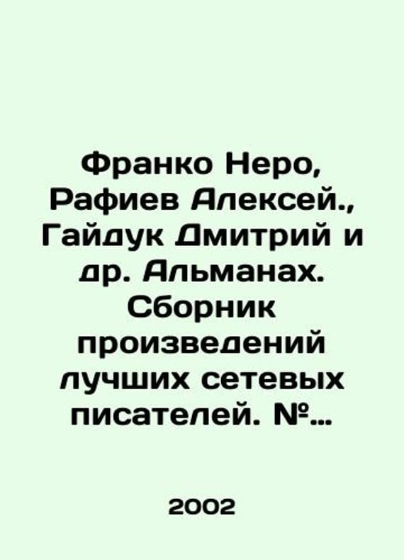 Short description: Franco Nero, Alexey Rafiev., Dmitry Haiduk et al. Almanac. Compilation of works by the best network writers. # 1. In Russian /Franko Nero, Rafiev Aleksey., Gayduk Dmitriy i dr. Al'manakh. Sbornik proizvedeniy luchshikh setevykh pisateley. # 1.In Russian.UDAFF.COM UDAFF.COM 2002. 248 c. We have thousands of titles and often several copies of each title may be available. Please feel free to contact us for a detailed description of the copies available. SKUalb758d3178cd2b72b6