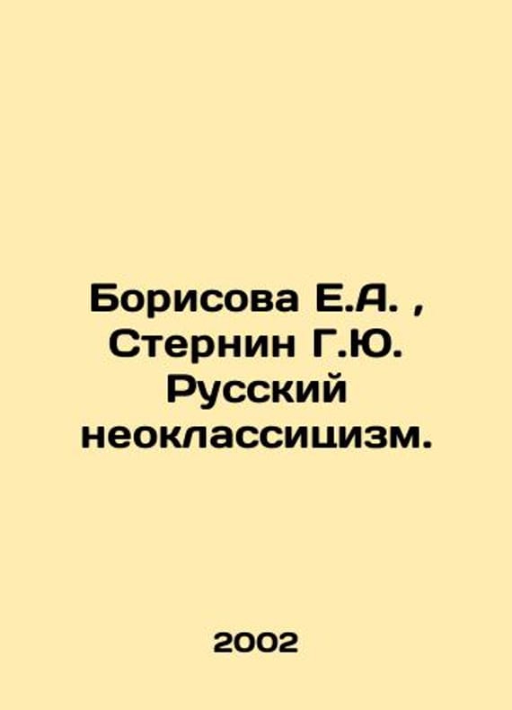 Short description: Borisova E.A., Sternin G.Yu. Russian Neoclassicism. In Russian /Borisova E.A., Sternin G.Yu. Russkiy neoklassitsizm.In Russian.M. Galart 2002 288s. We have thousands of titles and often several copies of each title may be available. Please feel free to contact us for a detailed description of the copies available. SKUalb75b1378d3715504f