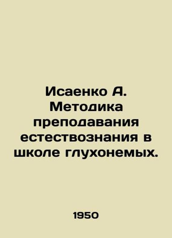 Isaenko A. Methodology of teaching science in a school for the deaf and mute. In Russian /Isaenko A. Metodika prepodavaniya estestvoznaniya v shkole glukhonemykh. M Uchpedgiz 1950. We have thousands of titles and often several copies of each title may be available. Please feel free to contact us for a detailed description of the copies available. SKUalb75c6b40b9c15e69b.