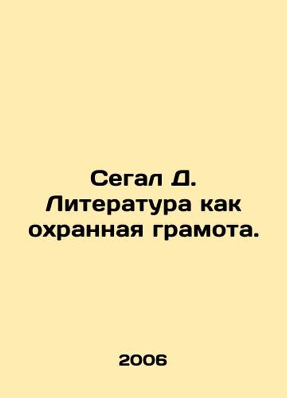 Short description: Segal D. Literature as a Certificate of Protection. In Russian /Segal D. Literatura kak okhrannaya gramota.In Russian.M. 2006. 974s. We have thousands of titles and often several copies of each title may be available. Please feel free to contact us for a detailed description of the copies available. SKUalb75f43b8ae246f421