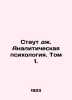 Stout J. Analytical Psychology. Volume 1. In Russian /Staut dzh. Analiticheskaya psikhologiya. Tom 1. Second edition Moscow-Petrograd. State edition 1923. We have thousands of titles and often several copies of each title may be available. Please feel free to contact us for a detailed description of the copies available. SKUalb7644e32eab2d25c7.