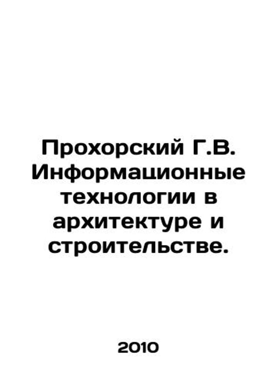 G.V. Prokhorsky Information Technology in Architecture and Construction. In Russian /Prokhorskiy G.V. Informatsionnye tekhnologii v arkhitekture i stroitelstve. Textbook. KNORUS 2010. We have thousands of titles and often several copies of each title may be available. Please feel free to contact us for a detailed description of the copies available. SKUalb76f01e1d33003940.