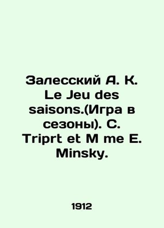 Zalessky A. K. Le Jeu des saisons. C. Triprt et M me E. Minsky. In Russian (ask us if in doubt)/Zalesskiy A. K. Le Jeu des saisons.(Igra v sezony). C. Triprt et M me E. Minsky. School employee A K Zalessky M Publishing employee School employee. 1912. Publishing original basket case with cards for the development of French language. We have thousands of titles and often several copies of each title may be available. Please feel free to contact us for a detailed description of the copies available. SKUalb775389f1de0278bc