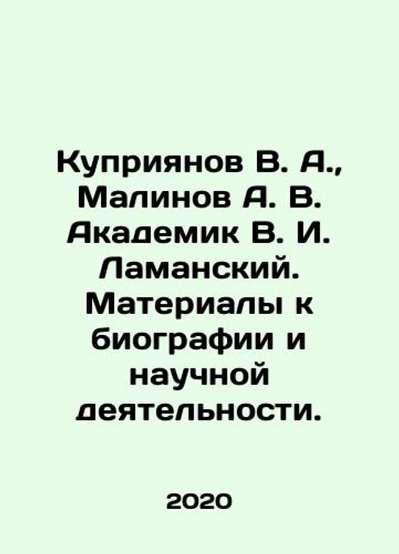 Short description: upriyanov V. A., Malinov A. V. Akademik V. I. Lamansky. Materials for biography and scientific activity In Russian /Kupriyanov V. A., Malinov A. V. Akademik V. I. Lamanskiy. Materialy k biografii i nauchnoy deyatel'nosti.In Russian.St. Petersburg Dmitry Bulanin 2020. 560s. We have thousands of titles and often several copies of each title may be available. Please feel free to contact us for a detailed description of the copies available. SKUalb7761436d8c30a392