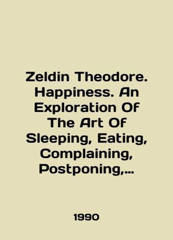 Short description: Zeldin Theodore. Happiness. An Exploration Of The Art Of Sleeping, Eating, Complaining, Postponing, Sympathising, And, Above All, Being Free In English /Zeldin Theodore. Happiness. An Exploration Of The Art Of Sleeping, Eating, Complaining, Postponing, Sympathising, And, Above All, Being Free (Schast'e. Issledovanie iskusstva sna, edy, zhalob, otsrochek, sochuvstviya i, prevyshe vsego, svobody)In English.In English, London PICADOR 1990. 320 p. We have thousands of titles and often several copies of each title may be available. Please feel free to contact us for a detailed description of the copies available. SKUalb777045b8e0a88535