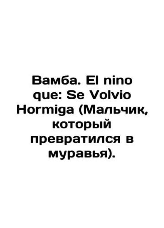 Wamba. El nino que: Se Volvio Hormiga (The boy who turned into an ant). In Russian /Vamba. El nino que: Se Volvio Hormiga (Malchik, kotoryy prevratilsya v muravya). Series: Biblioteca infantil La Abeja. # 23. Book in Spanish. Rio de Janeiro. Tor. 31 p., il. We have thousands of titles and often several copies of each title may be available. Please feel free to contact us for a detailed description of the copies available. SKUalb77736d6518aaff3b.