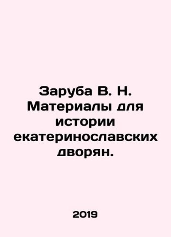 Zaruba V. N. Materials for the history of the Ekaterinoslavl nobles. In Russian (ask us if in doubt)/Zaruba V. N. Materialy dlya istorii ekaterinoslavskikh dvoryan. Dnieper Lira 2009 476 p. We have thousands of titles and often several copies of each title may be available. Please feel free to contact us for a detailed description of the copies available. SKUalb77790ff2fbc001f3