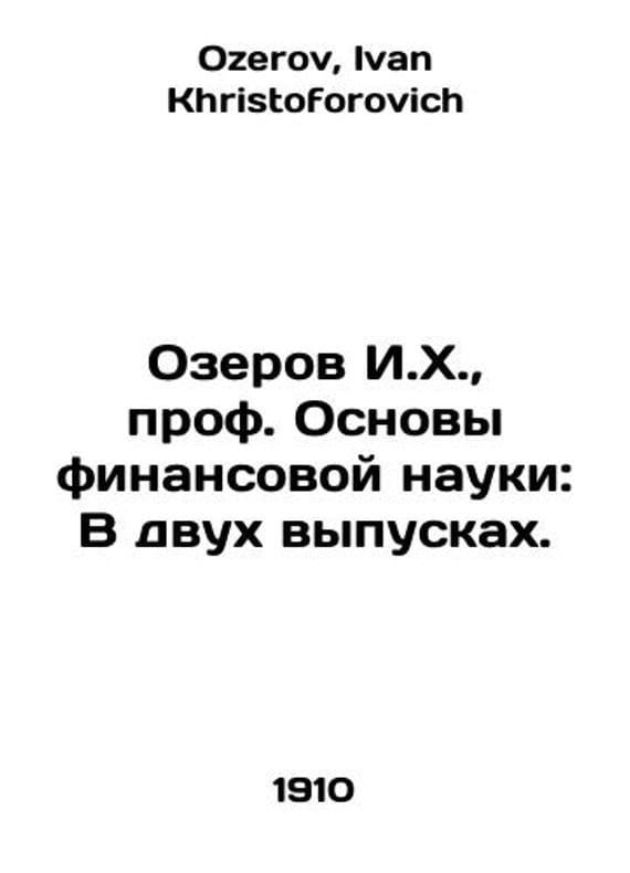 I. H. Ozerov Professor of Fundamentals of Financial Science. In two issues in one book In Russian (ask us if in doubt)/Ozerov I.Kh. prof. Osnovy finansovoy nauki. V dvukh vypuskakh v odnom pereplete Short description: In Russian (ask us if in doubt).Issue I: Exercise on ordinary income. Issue 5 (with separate supplement). Issue II: Budget. Forms of collection. Local finance. Public credit. Issue 4 supplemented We have thousands of titles and often several copies of each title may be available. Please feel free to contact us for a detailed description of the copies available. SKUalb5c70637e9ed92a66