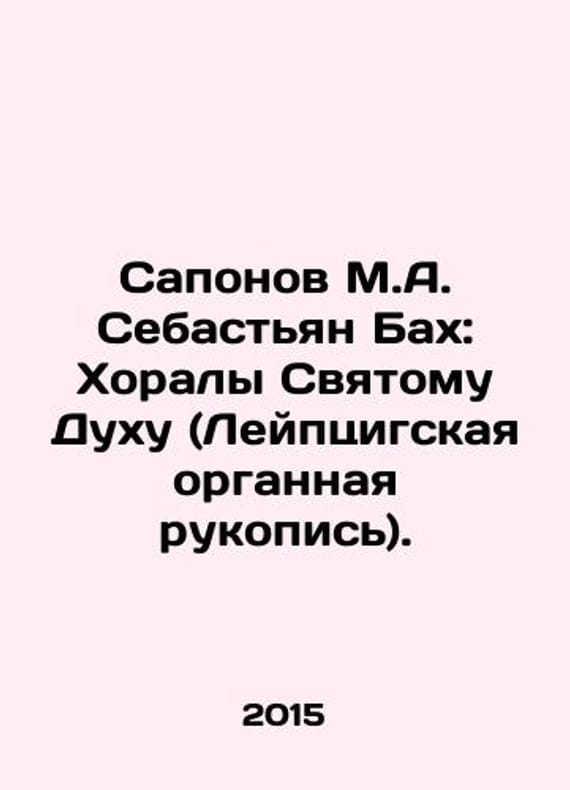Short description: Saponov M.A. Sebastian Bach: Chorals to the Holy Spirit (Leipzig Organ Manuscript). In Russian /Saponov M.A. Sebast'yan Bakh: Khoraly Svyatomu Dukhu (Leyptsigskaya organnaya rukopis').In Russian.M. MK 2015. 200 p. We have thousands of titles and often several copies of each title may be available. Please feel free to contact us for a detailed description of the copies available. SKUalb77c53c26ad4d3e81