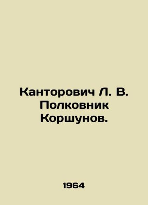 Short description: Kantorovich L. V. Colonel Korshunov. In Russian /Kantorovich L. V. Polkovnik Korshunov.In Russian.Drawings by the author. Frunze. Kyrgyz State Publishing House. 1964. 620 p. We have thousands of titles and often several copies of each title may be available. Please feel free to contact us for a detailed description of the copies available. SKUalb77cbd99a6783cbff