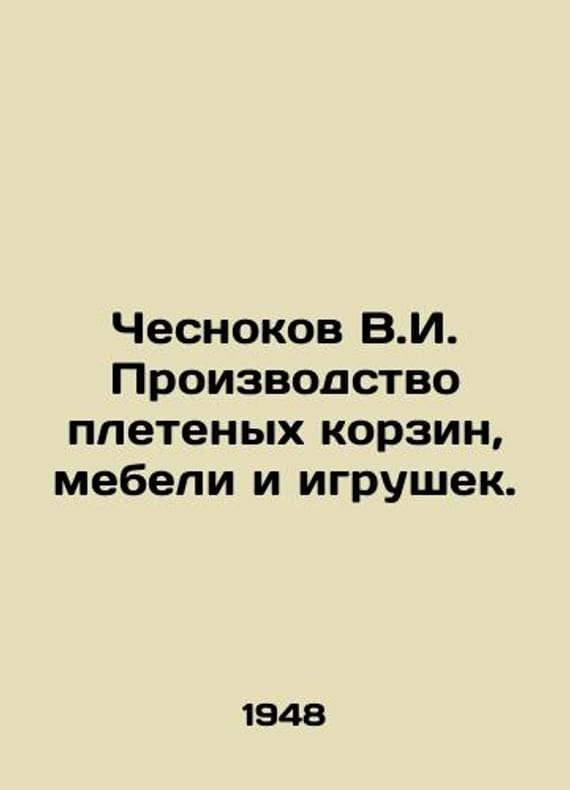 Short description: Garlic V.I. Manufacture of wicker baskets, furniture and toys. In Russian /Chesnokov V.I. Proizvodstvo pletenykh korzin, mebeli i igrushek.In Russian.Moscow Gizmestprom 1948. Raw materials and materials for weaving. Tools and equipment. Preparation of raw materials. Finishing materials. Preparation for weaving. Main types of weaving. Manufacture of baskets. Manufacture of wicker furniture. Manufacture of wicker toys. Decoration of wicker products. Disinfection of wicker products. 63 drawings in the text. Circulation 2000. We have thousands of titles and often several copies of each title may be available. Please feel free to contact us for a detailed description of the copies available. SKUalb77d30e8148f45fbf