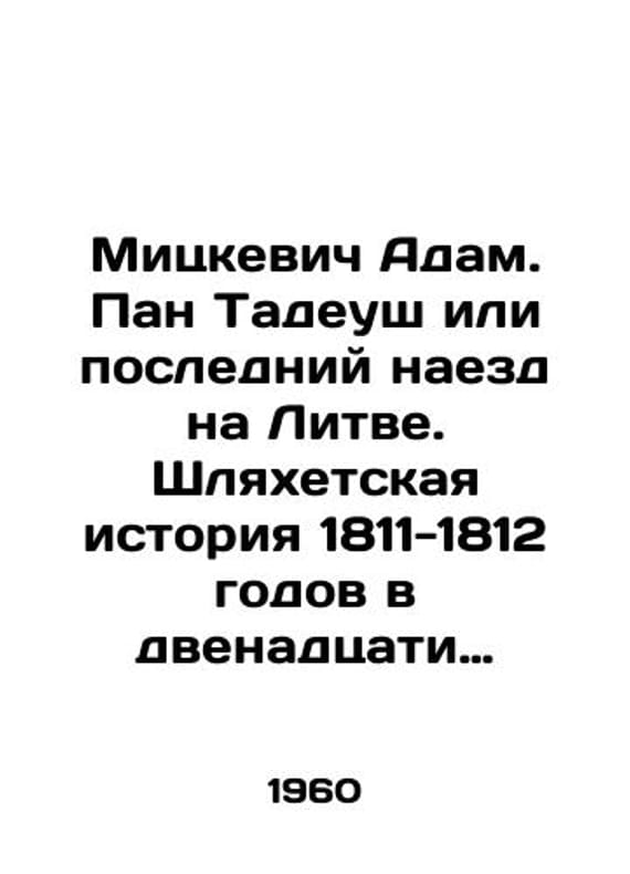 Mickiewicz Adam. Pan Tadeusz or the last run-in with Lithuania. The history of the Schlehet in 1811-1812 in twelve books of poetry. In Russian /Mitskevich Adam. Pan Tadeush ili posledniy naezd na Litve. Shlyakhetskaya istoriya 1811-1812 godov v dvenadtsati knigakh stikhami. Translation from Polish. Illustrations by M. Andriolli. Warsaw. Arcade. 1960. We have thousands of titles and often several copies of each title may be available. Please feel free to contact us for a detailed description of the copies available. SKUalb77f66eaf0d4f9911.