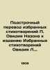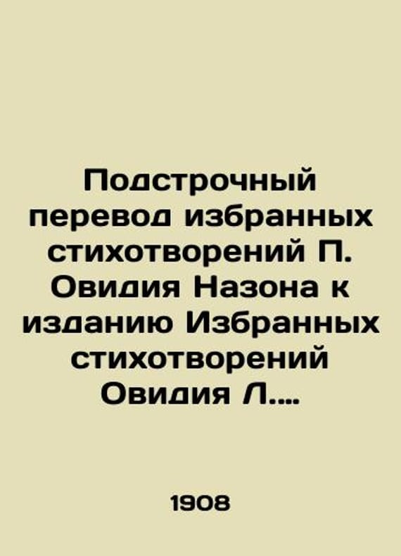 Supporting translation of selected poems by Ovidiy Nazon to the edition of Selected poems by Ovidiy L. Georgievsky and S. Manshtein explained by Professor I. Netushil In Russian /Podstrochnyy perevod izbrannykh stikhotvoreniy Ovidiya Nazona k izdaniyu Izbrannykh stikhotvoreniy Ovidiya L. Georgievskogo i S. Manshteyna obyasnennykh professorom i. Netushilem Compiled by A. Kagan with the attachment of a translation of all the words arranged in Latin order. Odessa Student Friend 1908. We have thousands of titles and often several copies of each title may be available. Please feel free to contact us for a detailed description of the copies available. SKUalb77f7cdc68604f37c.