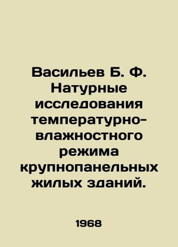 Vasiliev B. F. In situ studies of the temperature and humidity regime of large-panel residential buildings. In Russian /Vasilev B. F. Naturnye issledovaniya temperaturno-vlazhnostnogo rezhima krupnopanelnykh zhilykh zdaniy. M. Publishing House of Building Literature. Circulation 2700 copies 1968. We have thousands of titles and often several copies of each title may be available. Please feel free to contact us for a detailed description of the copies available. SKUalb781886cc71b2871d.