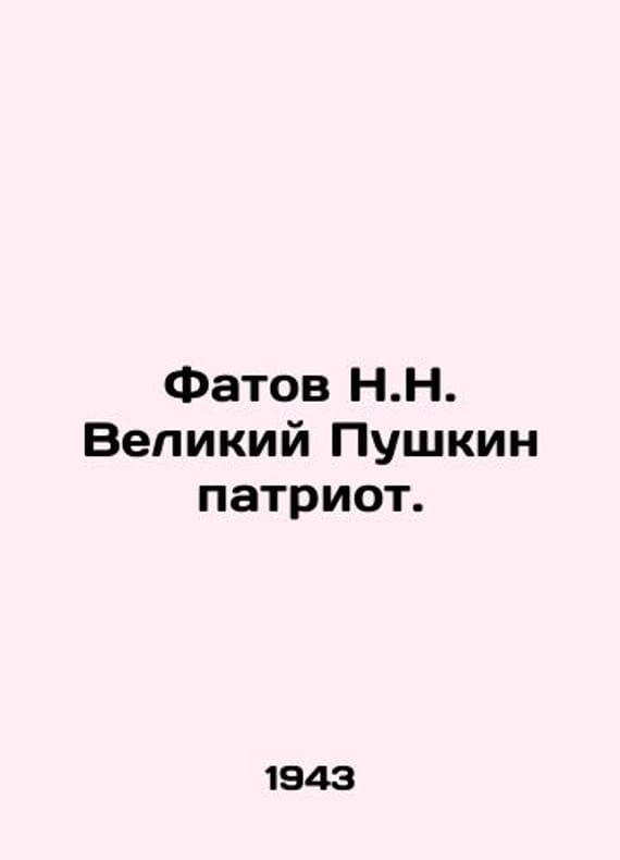 Short description: Fatov N.N. Great Pushkin is a patriot. In Russian /Fatov N.N. Velikiy Pushkin patriot.In Russian.Kozmodemyansk Gorno-Mari Branch of the Mari State Publishing House. 1943. 80s. We have thousands of titles and often several copies of each title may be available. Please feel free to contact us for a detailed description of the copies available. SKUalb7862fe9577fc8228