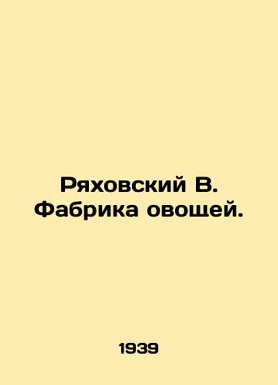 Ryakhovsky V. Vegetable Factory. In Russian /Ryakhovskiy V. Fabrika ovoshchey. Participant of the All-Union Agricultural Exhibition. Moscow Worker. 1939. We have thousands of titles and often several copies of each title may be available. Please feel free to contact us for a detailed description of the copies available. SKUalb78a2ffeecfaf4276.