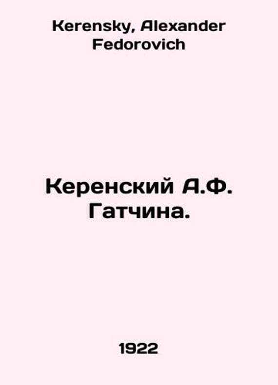 A.F. Gatchinas Kerensky. In Russian /Kerenskiy A.F. Gatchina. M. Publishing House Book Printer. 1922. Vlll, 40 pp. We have thousands of titles and often several copies of each title may be available. Please feel free to contact us for a detailed description of the copies available. SKUalb78b78e6145b5fb42.