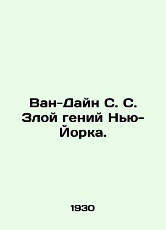 Van Dyne S. S. The Evil Genius of New York. In Russian (ask us if in doubt)/Van-Dayn S. S. Zloy geniy Nyu-Yorka. Riga. Public Library Book Publishing House. 1930. 200s. SKUalb78fec7660c245949.
