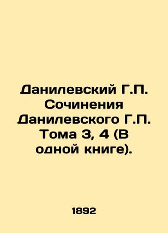 Short description: Danilevsky G.P. Works by Danilevsky G.P. Volume 3, 4 (In One Book). In Russian /Danilevskiy G.P. Sochineniya Danilevskogo G.P. Toma 3, 4 (V odnoy knige).In Russian.Edition 7. Postmortem in 9 volumes. St. Petersburg Typography by M.M. Stasyulevich. 1892. 458 p. We have thousands of titles and often several copies of each title may be available. Please feel free to contact us for a detailed description of the copies available. SKUalb79318c703985b3ae
