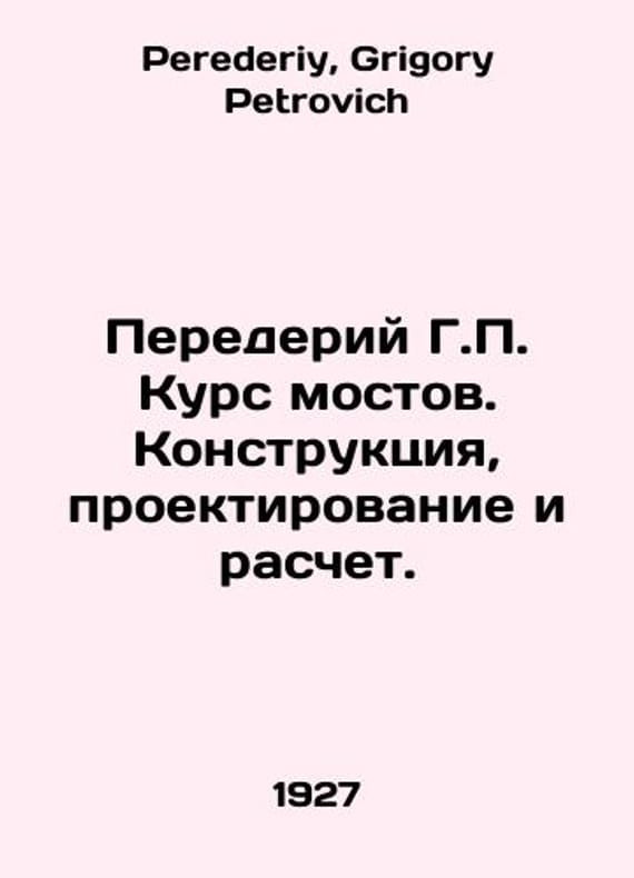 G.P. Bridge Course: Construction, Design, and Calculation. In Russian /Perederiy G.P. Kurs mostov. Konstruktsiya, proektirovanie i raschet. Part One. Bridges of small spans: stone, wooden and iron. With 1023 drawings in the text. We have thousands of titles and often several copies of each title may be available. Please feel free to contact us for a detailed description of the copies available. SKUalb79aa2cadb7ce5503.