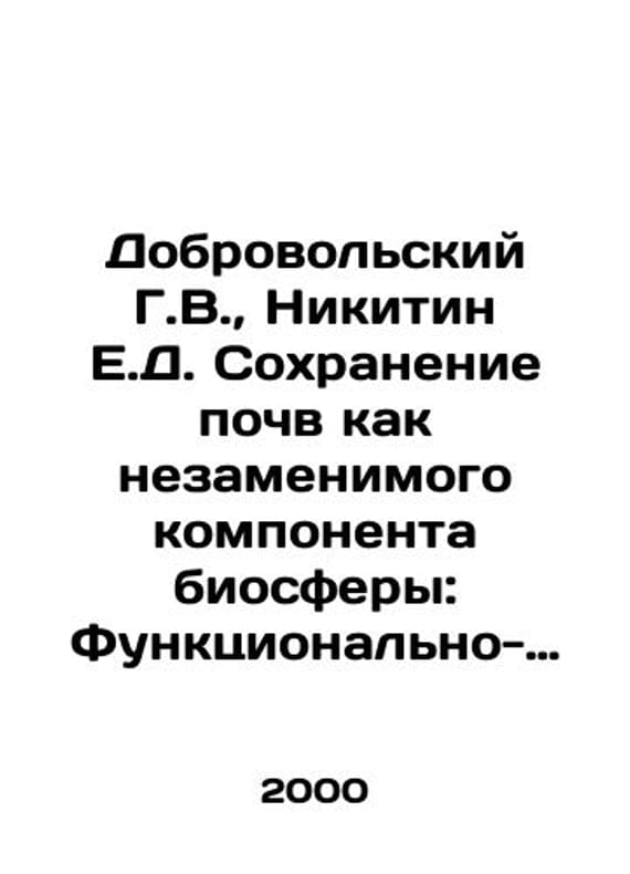 Voluntary G.V., Nikitin E.D. Soil conservation as an indispensable component of the biosphere: A functional-ecological approach. In Russian /Dobrovolskiy G.V., Nikitin E.D. Sokhranenie pochv kak nezamenimogo komponenta biosfery: Funktsionalno-ekologicheskiy podkhod. Artist T.V. Bolotina. Institute of Soil Science of Moscow State University-Russian Academy of Sciences. Faculty of Soil Science of Moscow State University named after M.V. Lomonosov. We have thousands of titles and often several copies of each title may be available. Please feel free to contact us for a detailed description of the copies available. SKUalb79c0d84fad7dc11d.