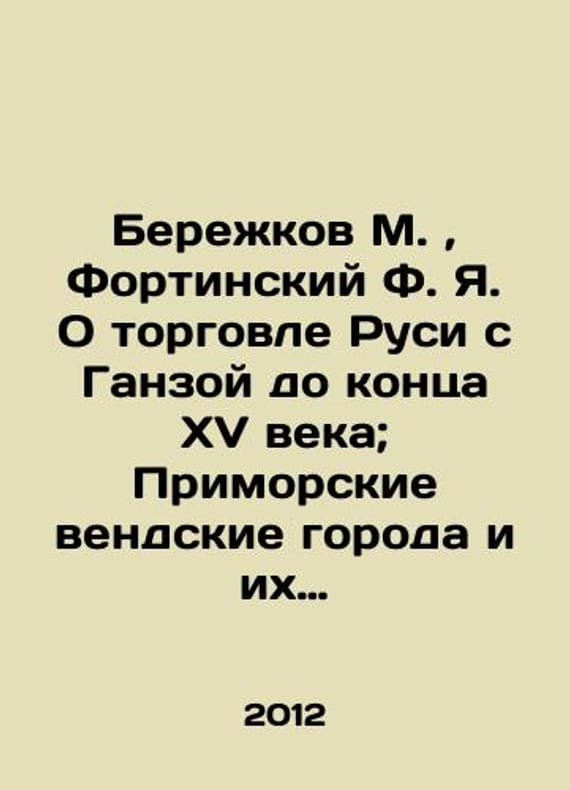 "Berezhkov M., Fortinsky F.Ya. On the trade of Russia with Hansa until the end of the fifteenth century; the seaside Vend cities and their influence on the formation of the Hanseatic Union until 1370. In Russian /Berezhkov M., Fortinskiy F. Ya. O torgovle Rusi s Ganzoy do kontsa XV veka; Primorskie vendskie goroda i ikh vliyanie na obrazovanie Ganzeyskogo soyuza do 1370 goda. Tyre Room 5, Moscow Publishing House, V. Sekachev, 2012 704s. We have thousands of titles and often several copies of each title may be available. Please feel free to contact us for a detailed description of the copies available. SKUalb7a1d071f14c583d8."