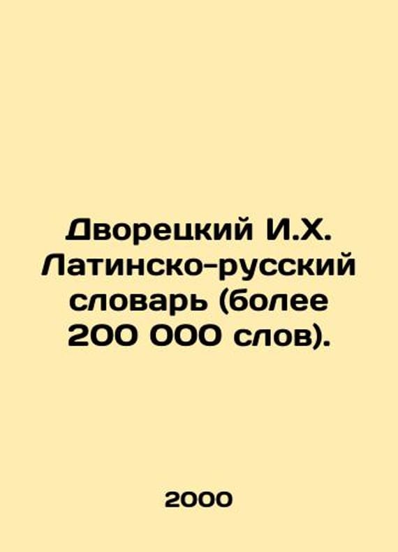 Short description: Dictionary of Latin and Russian (more than 200,000 words). In Russian /Dvoretskiy I.Kh. Latinsko-russkiy slovar' (bolee 200 000 slov).In Russian.6th ed. M. Russian Language. 2000. 846 pp. We have thousands of titles and often several copies of each title may be available. Please feel free to contact us for a detailed description of the copies available. SKUalb7a62a355d6664d6e