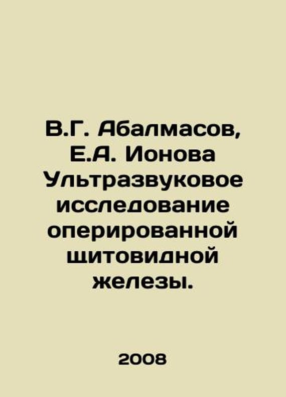 V.G. Abalmasov, E.A. Ionova Ultrasound examination of the operated thyroid gland. In Russian /V.G. Abalmasov, E.A. Ionova Ultrazvukovoe issledovanie operirovannoy shchitovidnoy zhelezy. Monograph M Medpraktika-M 2008. We have thousands of titles and often several copies of each title may be available. Please feel free to contact us for a detailed description of the copies available. SKUalb7a6f436575af9781.