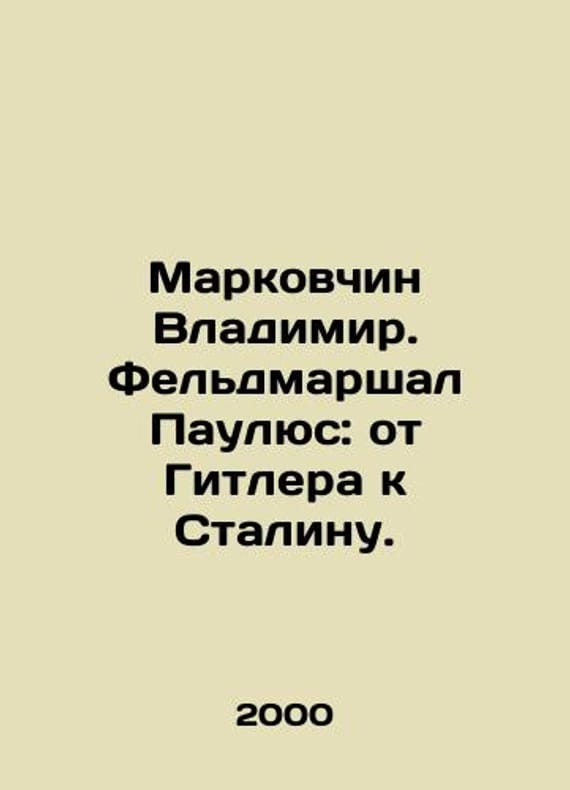 Markovchin Vladimir. Field Marshal Paulus: from Hitler to Stalin. In Russian /Markovchin Vladimir. Feldmarshal Paulyus: ot Gitlera k Stalinu. Series: The Unknown War of M. Detective Press 2000. We have thousands of titles and often several copies of each title may be available. Please feel free to contact us for a detailed description of the copies available. SKUalb7aa20b2952bcb6ff.