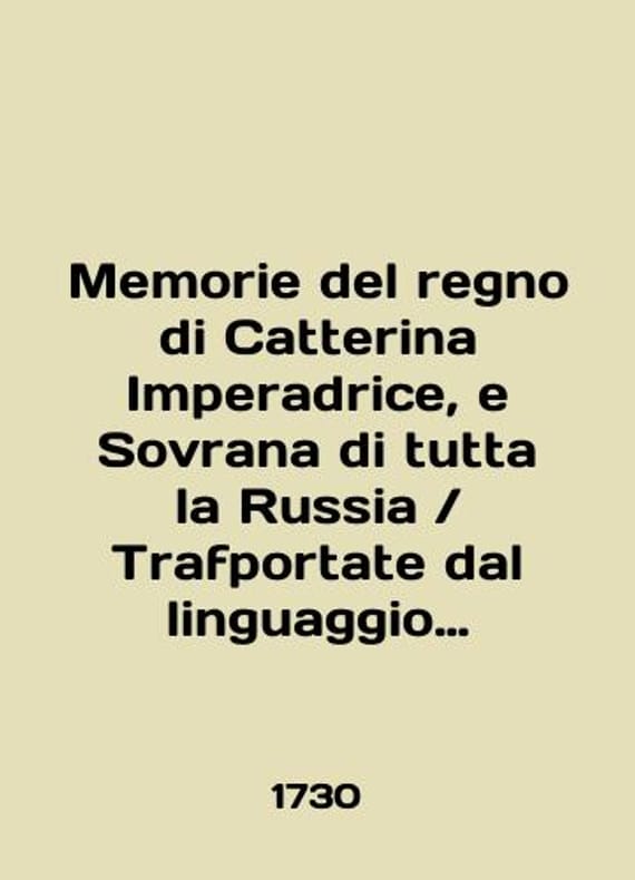 Trafportate dal linguaggio franzefe nell italiano:/Memorie del regno di Catterina Imperadrice e Sovrana di tutta la Russia Short description: In English (ask us if in doubt).Memories of the reign of Catherine the Empress and State Dress of All Russia
