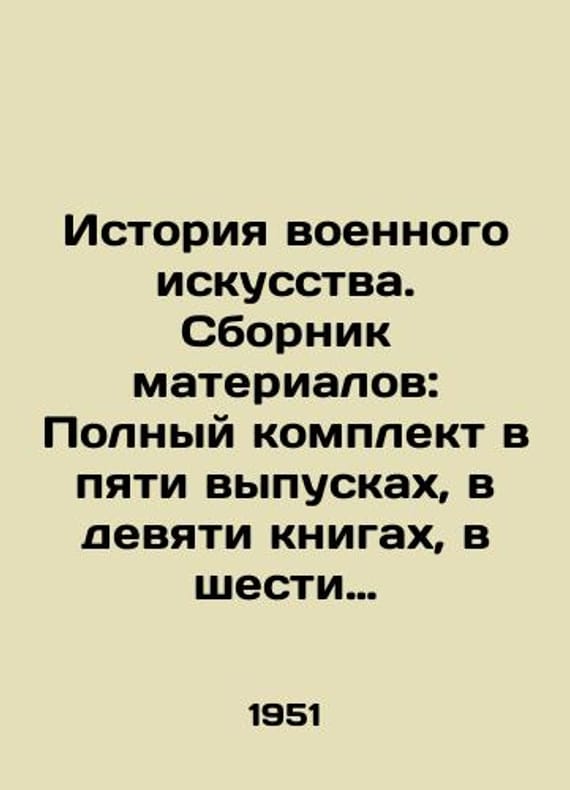 History of Military Art. Materials Collection: Complete set in five issues, nine books, six bindings In Russian /Istoriya voennogo iskusstva. Sbornik materialov: Polnyy komplekt v pyati vypuskakh, v devyati knigakh, v shesti perepletakh Moscow: Military Publishing House of the Military Ministry of the USSR, 1951-1955. 580s. We have thousands of titles and often several copies of each title may be available. Please feel free to contact us for a detailed description of the copies available. SKUalb7ac24f6b8a92e591.