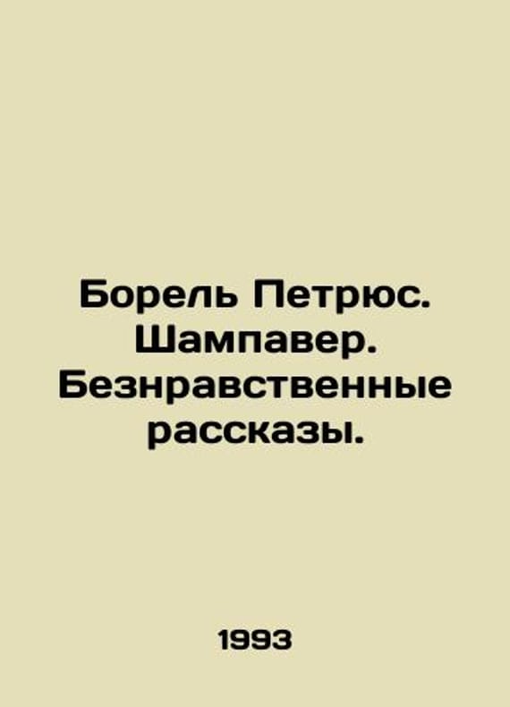 Petrus Borel. Champagne. Immoral Stories. In Russian /Petryus Borel. Shampaver. Beznravstvennye rasskazy. Series: Literary Monuments. Moscow, Science, 1971, 208 p. We have thousands of titles and often several copies of each title may be available. Please feel free to contact us for a detailed description of the copies available. SKUalbf91fe76c08119dd5.