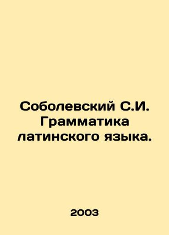 Sobolevsky S.I. Latin Grammar. In Russian /Sobolevskiy S.I. Grammatika latinskogo yazyka. Part 1, Theoretical. Morphology. Syntax. Textbook. Reprinted from M. List New 2003. 432 p. We have thousands of titles and often several copies of each title may be available. Please feel free to contact us for a detailed description of the copies available. SKUalb7af74679d30d2729.