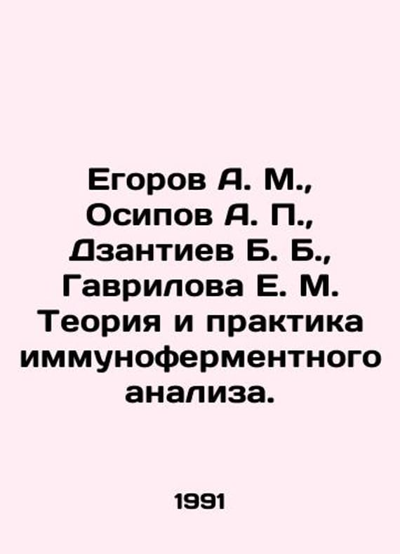 Short description: gorov A. M., Osipov A. P., Dzantiev B. B., Gavrilova E. M. Theory and Practice of Enzyme Immunoassay In Russian /Egorov A. M., Osipov A. P., Dzantiev B. B., Gavrilova E. M. Teoriya i praktika immunofermentnogo analiza.In Russian.M. Higher School of 1991. 288s. We have thousands of titles and often several copies of each title may be available. Please feel free to contact us for a detailed description of the copies available. SKUalb7bce29fb2a17b409