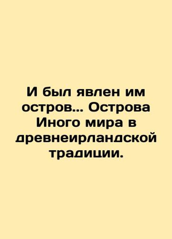 And he revealed an island. Islands of the Other World in the ancient Irish tradition. In Russian /I byl yavlen im ostrov. Ostrova Inogo mira v drevneirlandskoy traditsii.Texts and Research Series: Studio philologica M Publishing House JSK 2023 368s.We have thousands of titles and often several copies of each title may be available. Please feel free to contact us for a detailed description of the copies available. SKUalb7bfeca68154d71e6.